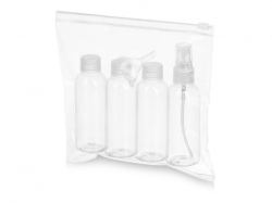Флакончики объёмом 80 мл подойдут для шампуня, геля для душа и других косметических средств, один флакон оснащён распылителем. Бутылочки упакованы в прозрачный непромокаемый пакет на zip-lock застёжке, который дополнительно защищает багаж.