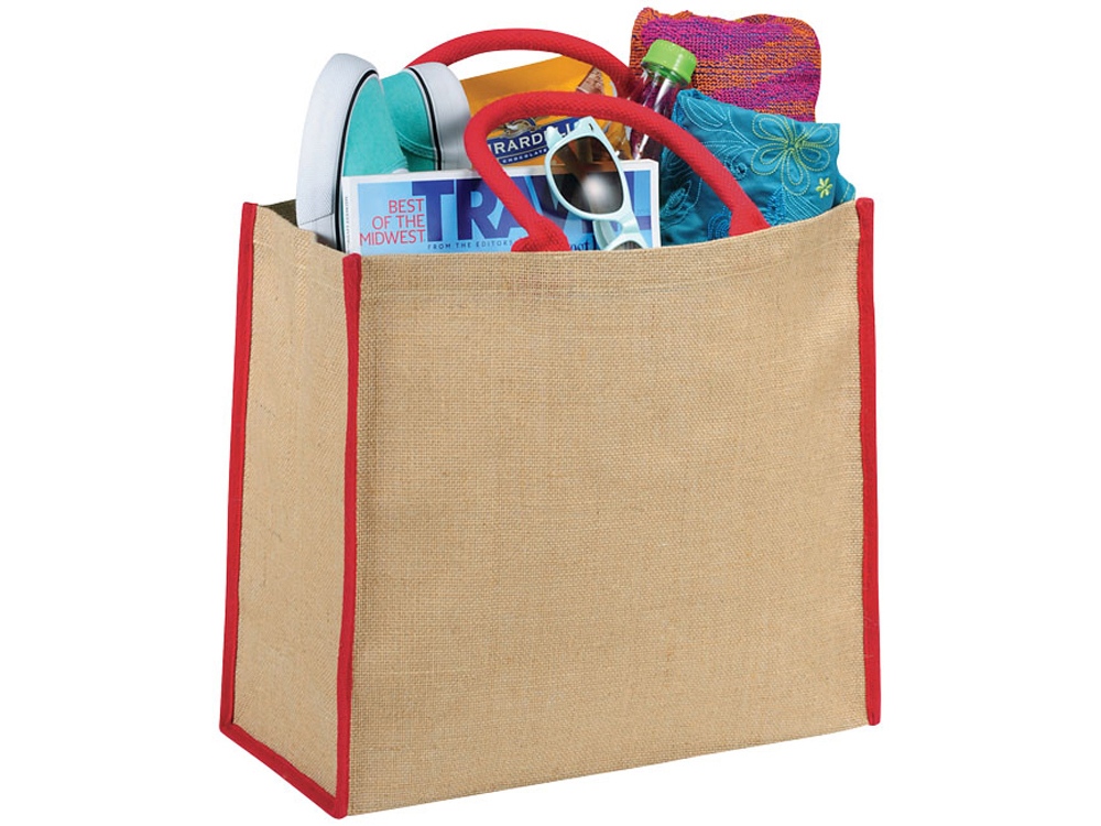 Сумка для покупок. Открытое основное отделение на липучке. Двойные ручки высотой 17 см. Джут.