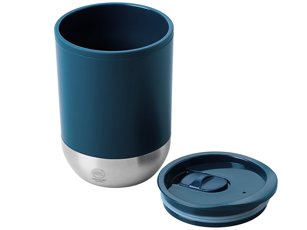 Термокружка с двойными стенками из переработанного полипропилена и дном из нержавеющей стали 304. В комплекте крышка-слайдер. Объём: 290 мл. Поставляется в экологичной коробке.