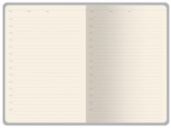 Бумажный блок, закрепленный книжным переплетом, выполнен из бежевой офсетной бумаги плотностью 70 г/ кв м. Внутри блока есть страница для персональных данных, справочная информация на 13 страницах. Блок для записей имеет линовку с указанием временных интервалов в один час.