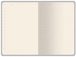 Бумажный блок, закрепленный книжным переплетом, выполнен из бежевой офсетной бумаги плотностью 70 г/ кв м. Внутри блока есть страница для персональных данных, справочная информация на 13 страницах. Блок для записей имеет линовку с указанием временных интервалов в один час.