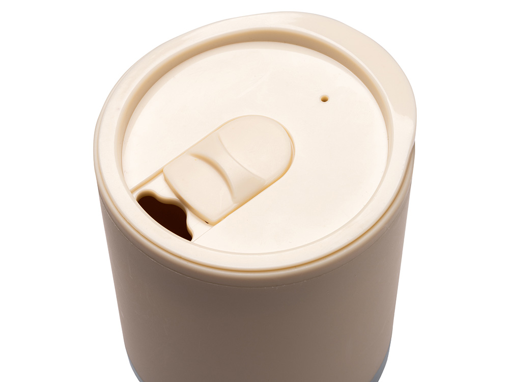 Термокружка с двойными стенками из переработанного полипропилена и дном из нержавеющей стали 304. В комплекте крышка-слайдер. Объём: 290 мл. Поставляется в экологичной коробке.