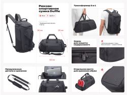 Спортивная сумка-рюкзак 2-в-1 подходит для походов в спортзал и деловых поездок. Чтобы превратить рюкзак в сумку, надо отстегнуть лямки внизу и вложить их в карман на молнии на спинке. В трансформере предусмотрено все для удобства использования: