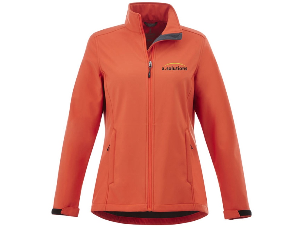 Женская куртка софтшел Maxson. Универсальный покрой. Передняя застежка на обратной молнии. Внутренняя планка. Карманы для рук на молнии. Эргономичные рукава. Усиленные локти. Молния легкого скольжения. Водонепроницаемый 8000 мм, дышащий 400 г/м2. Эластичная ткань из 100% полиэстера, склеенная с микрофлисом из 100% полиэстера с водонепроницаемой дышащей мембраной и водоотталкивающей отделкой. 270 г/м².