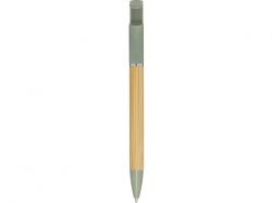 Бамбуковая шариковая ручка, которая также может служить подставкой для телефона. Кнопка и среднее кольцо изготовлены из переработанного пластика, наконечник — из латуни, а корпус — из бамбука, полученного из ответственных источников. Цвет чернил: синий. Длина непрерывной линии: 1000 метров. Размер пера: 1,0 мм. FSC certified bamboo. FSC Mix Credit N5 CU-COC-877277.