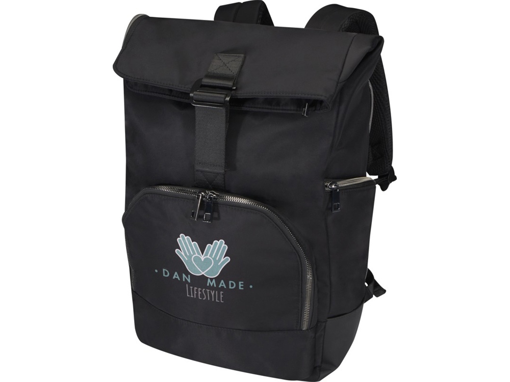 Рюкзак Rhine 15” GRS со сворачивающимся верхом на 18 л из материала, переработанного по стандарту GRS, сплошной черный