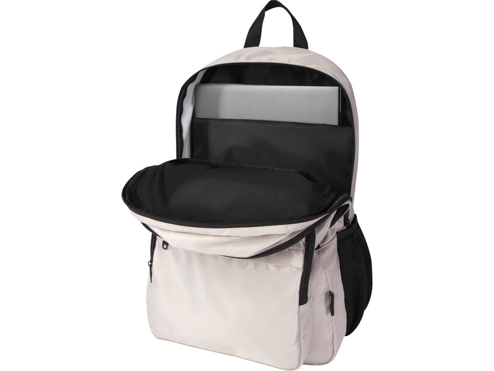Рюкзак Trend Plus изготовлен из сертифицированной согласно GRS переработанной мягкой и немнущейся ткани и качественной подкладки из RPET. Рюкзак оснащен отделением для ноутбука диагональю 15", отделением-органайзером, передними карманами на молнии, боковыми эластичными сетчатыми карманами и сетчатой вентилируемой задней частью с лямкой для крепления к ручке чемодана. Регулируемые плечевые ремни для оптимального комфорта при ношении. Объем: 20 литр. Выдерживает вес до 10 кг. Не содержит ПВХ. GRS certified recycled polyester.