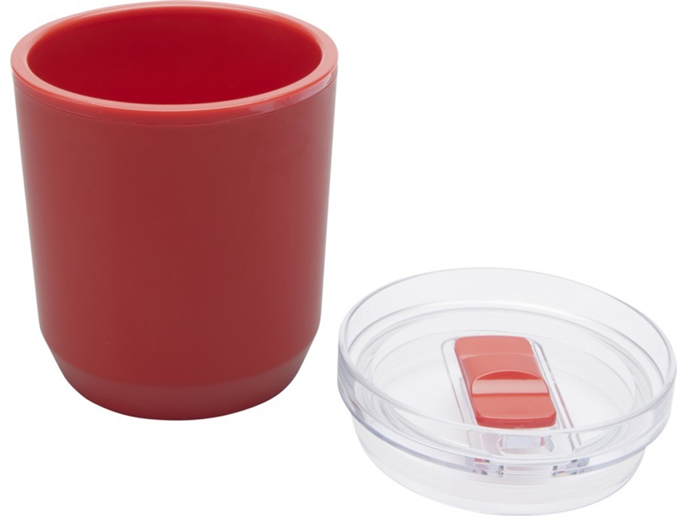 Кружка с простым дизайном, подходящая для большинства кофемашин и автомобильных подстаканников. Имеет двойную конструкцию из переработанного пластика PP снаружи и пластика PP внутри. Раздвижная крышка изготовлена из пластика AS и PP. Объем: 180 мл. Recycled Plastic.