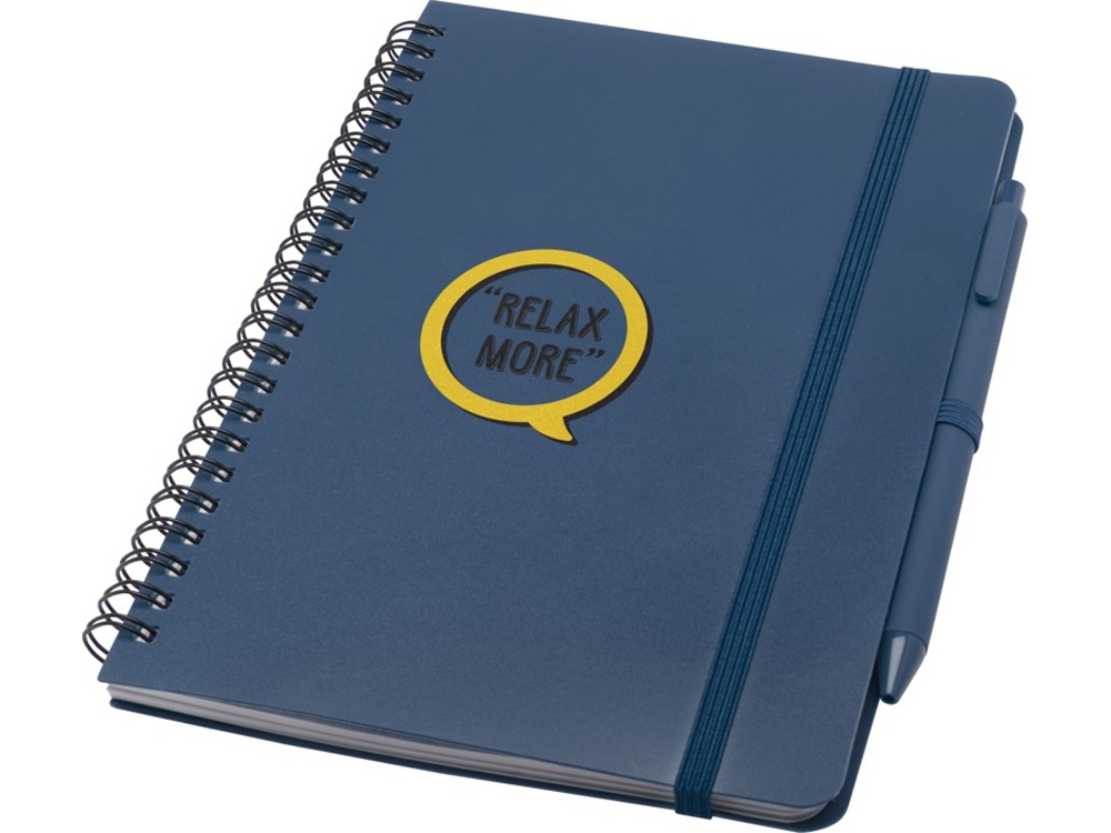 Блокнот Thalaasa формата А5 в твердой обложке из океанического пластика с шариковой ручкой - Синий