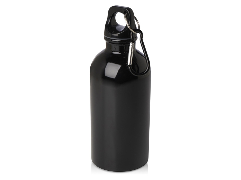 Одностенная бутылка для воды с карабином Oregon, изготовленная из нержавеющей стали, сертифицированной по стандарту RCS, объемом 400 мл - сплошной черный