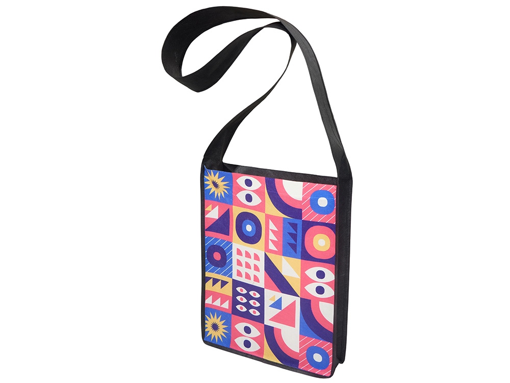 Удобная наплечная сумка-мессенджер с большой вместительностью. Подойдёт как альтернатива классических портфелей для выездных совещаний и других мероприятий. Донная складка позволяет разместить в необходимые документов или другие вещи, при этом позволяя компактно хранить сумку в сложенном виде. Брендирование производится полноцветной печатью в край с обеих сторон. На поверхности сумки можно разместить лого компании или выставки, а также полноразмерный принт любой сложности.
