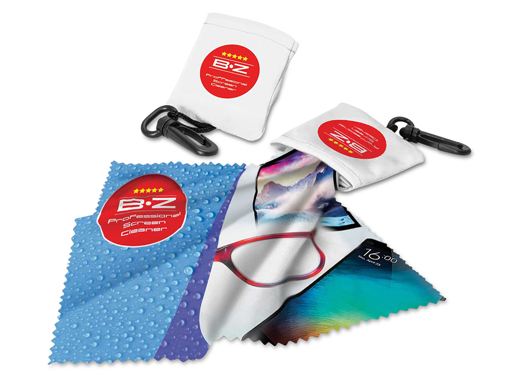 Практичный подарок, который станет отличным сувениром для салонов оптики, медицинских учереждений или магазинов фото- и видеотехники. Мягкая салфетка из микрофибры поможет качественно очистить линзы или экраны, не оставляя царапин на стекле и пластике. Удобный чехол с карабином поможет взять салфетку с собой, прикрепив её к сумке, рюкзаку или сумке-слингу и защитит саму салфетку от загрязнений. На салфетку можно нанести свой принт с помощью полноцветной печати.