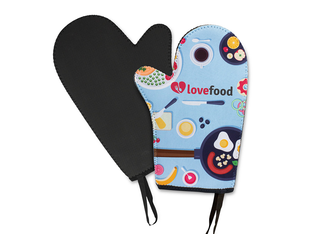 Кухонный мерч для любителей готовить не может обойтись без прихватки. Это практиный и самостоятельный подарок, который точно пригодится в любой семье. Прочный неопрен защищает руку от горячих поверхностей, делая процесс готовки безопасным даже для детей. Рукавицу-прихватку также можно добавить к сету кухонных приборов, например лопатке и ложке, создав гармоничный набор. Брендирование производится полноцветной печатью в край с одной стороны. На поверхности сумки можно разместить лого компании или выставки, а также полноразмерный принт любой сложности.