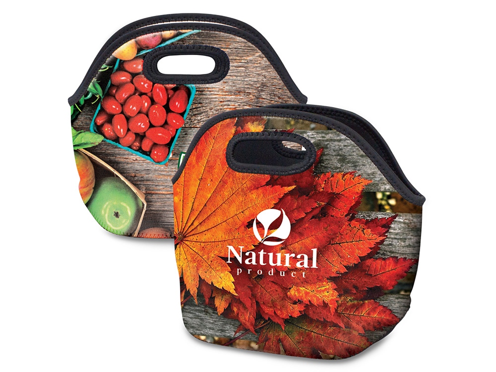 Модная сумка для ланча - обязательный спутник на пикнике и отдыхе за городом. Объём в 5 л достигается благодаря донной складке, такой вместительности хватит для еды на несколько человек. Широкие ручки встроены в конструкцию, благодаря чему сумка может выдержать большой вес, например объёмного термоса и нескольких ланчбоксов. Неопрен, из которого изготвлена сумка, дополнительно помогает сохранить продукты от перегрева в жару и не промокает. Полноцветная печать доступна на лицевой стороне.