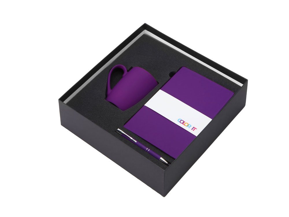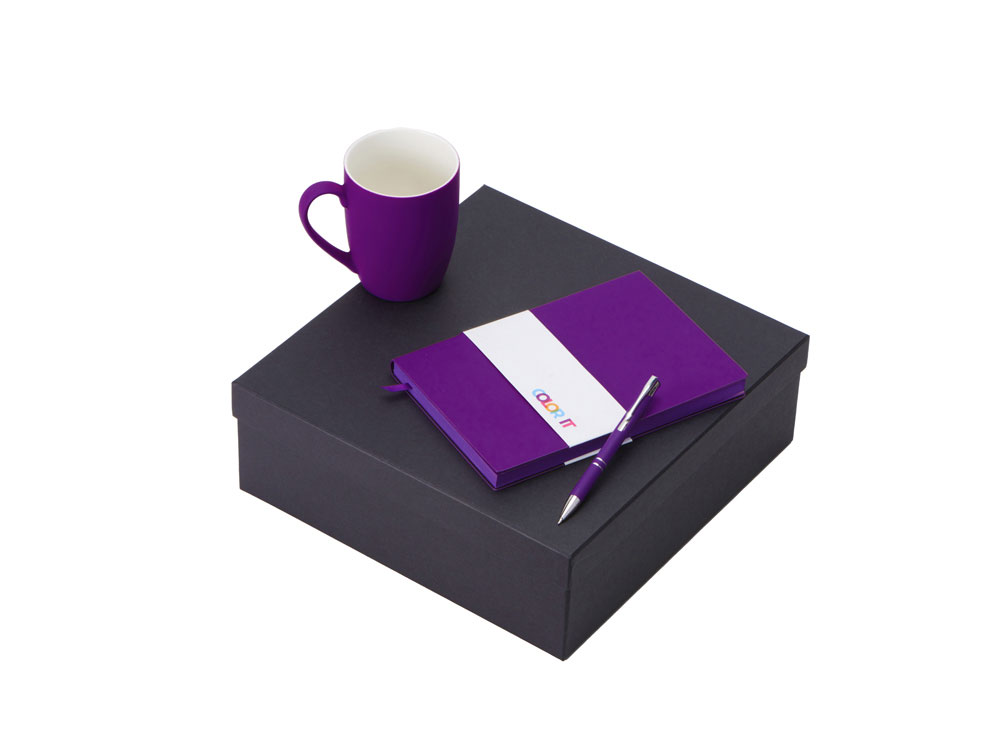 Подарочный набор с блокнотом С1, металлической ручкой и кружкой, фиолетовый