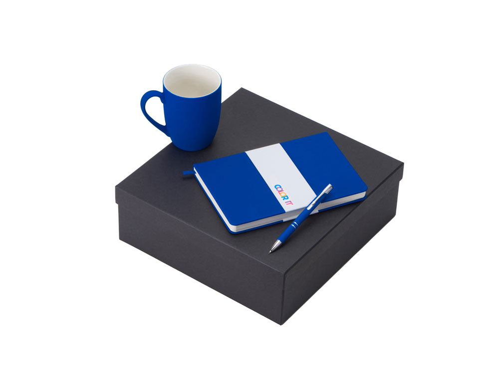 Подарочный набор с блокнотом С2, металлической ручкой и кружкой, синий