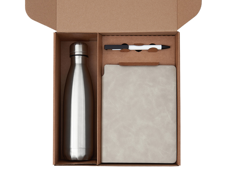Подарочный набор с термобутылкой, блокнотом, ручкой и чаем, белый