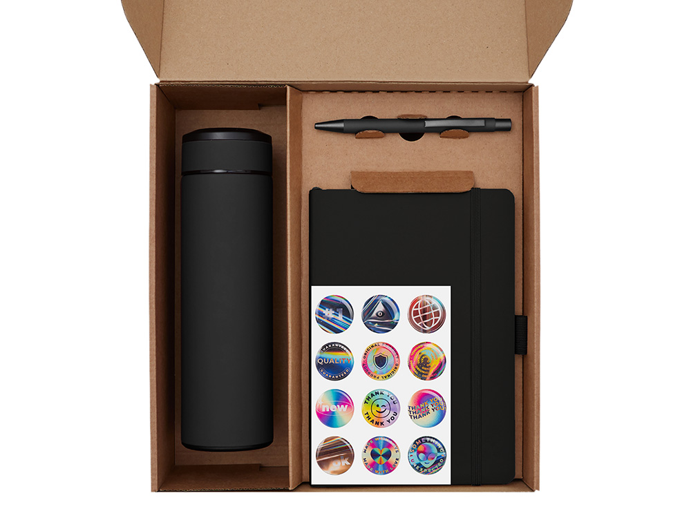 Подарочный набор с термосом, блокнотом, ручкой и чаем, черный