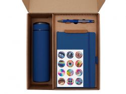Подарочный набор с термосом, блокнотом, ручкой и чаем, синий