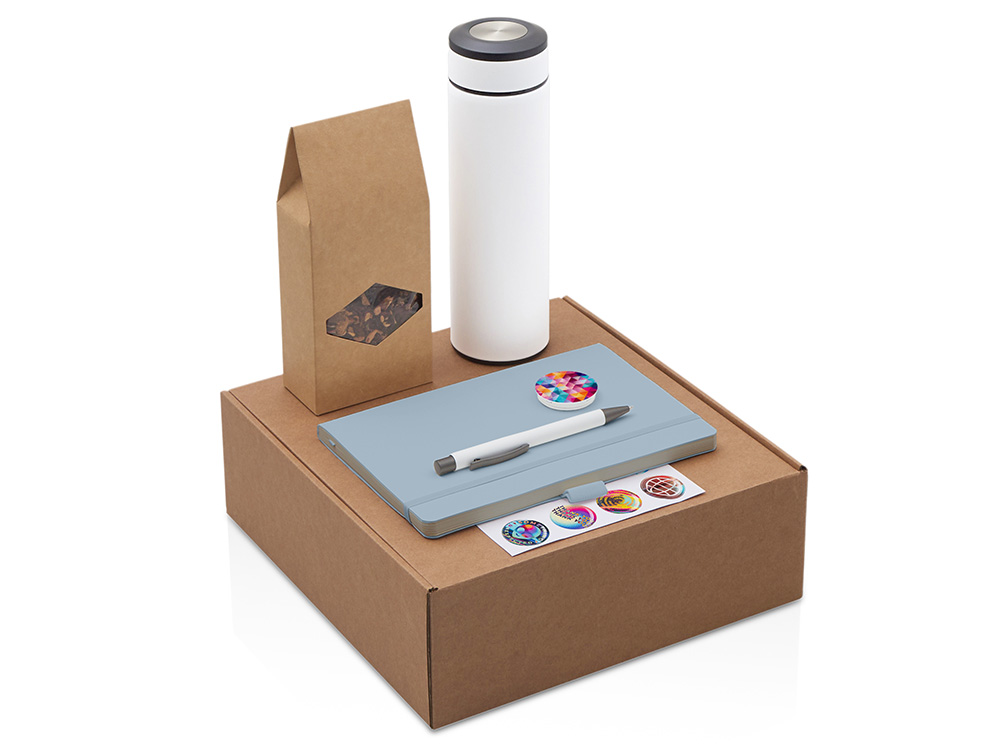 Дополнительное преимущество — набор доступен в конструкторе наборов: компоненты можно заменить и собрать индивидуальный вариант под стиль компании или вкусы получателя.