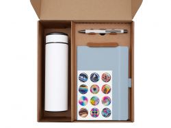 Подарочный набор с термосом, блокнотом, ручкой и чаем, голубой