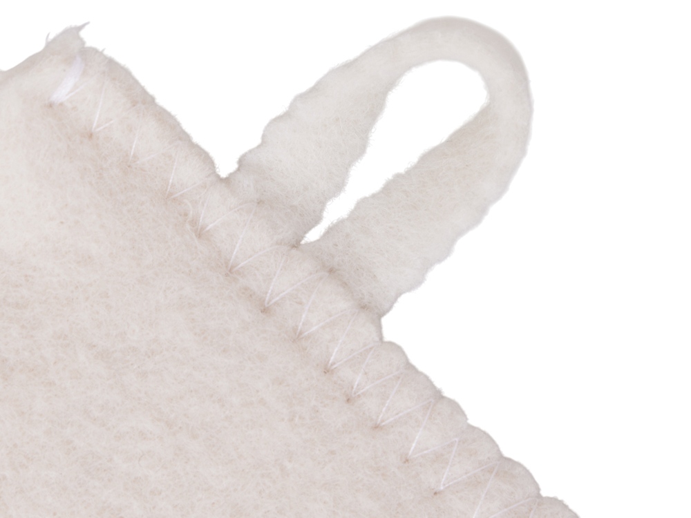 Войлок обладает высокими термоизоляционными свойствами и хорошо впитывает влагу, поэтому наилучшим образом подходит для изготовления банных аксессуаров.