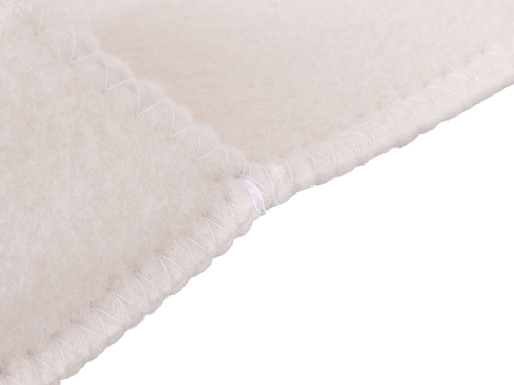 Войлок обладает высокими термоизоляционными свойствами и хорошо впитывает влагу, поэтому наилучшим образом подходит для изготовления банных аксессуаров.