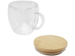 Стеклянная кружка Lenora объёмом 250 мл с двойными стенками и стильной бамбуковой крышкой. Она дольше сохраняет температуру напитка, помогает избежать проливов и бережно удерживает его аромат. Идеальный выбор для уютного чаепития или кофе-паузы.
