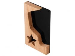 Красивая и современная награда для главных звезд любой компании. Черный акрил добавляет контраста рамке из бука, логотип или наградную надпись можно выгравировать на деревянной части или сделать уникальный дизайн, благодаря полной запечатке акрила методом УФ-печати.