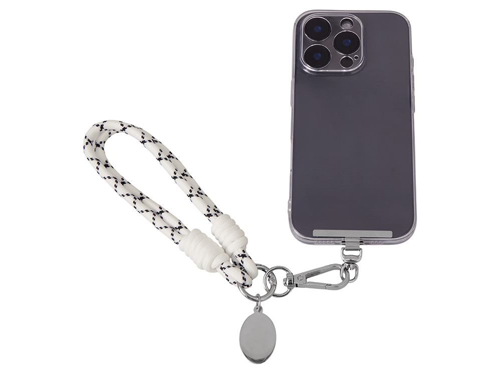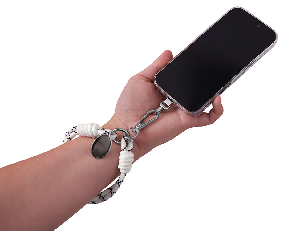 Брелок-браслет "Bohemian" c металлическим держателем для телефона, бело-черный