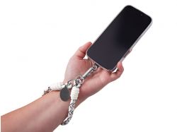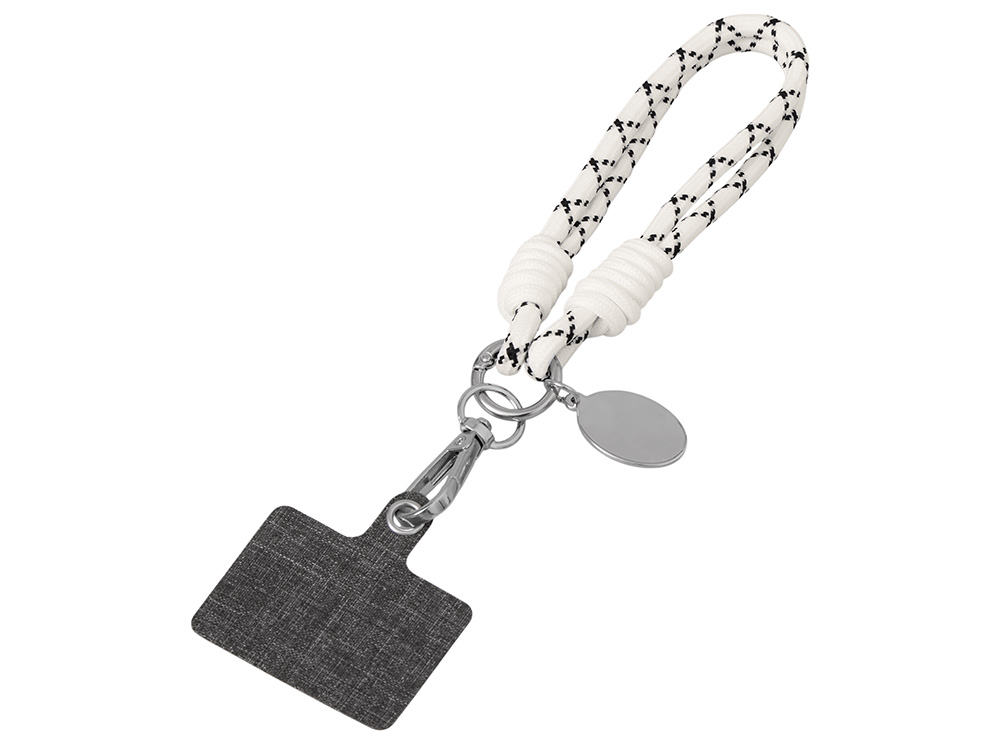 Брелок-браслет "Bohemian" c тканевым держателем для телефона, бело-черный