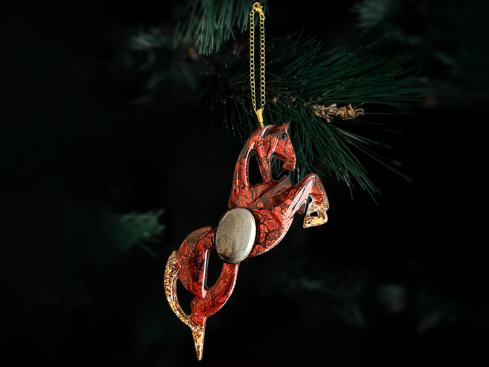 Лошадь - олицетворение свободы, силы и стремления вперёд. Фигура выполнена в динамике — будто застыла в прыжке, передавая энергию движения и благородства. Создана из ювелирной эпоксидной смолы и украшена природным камнем.
