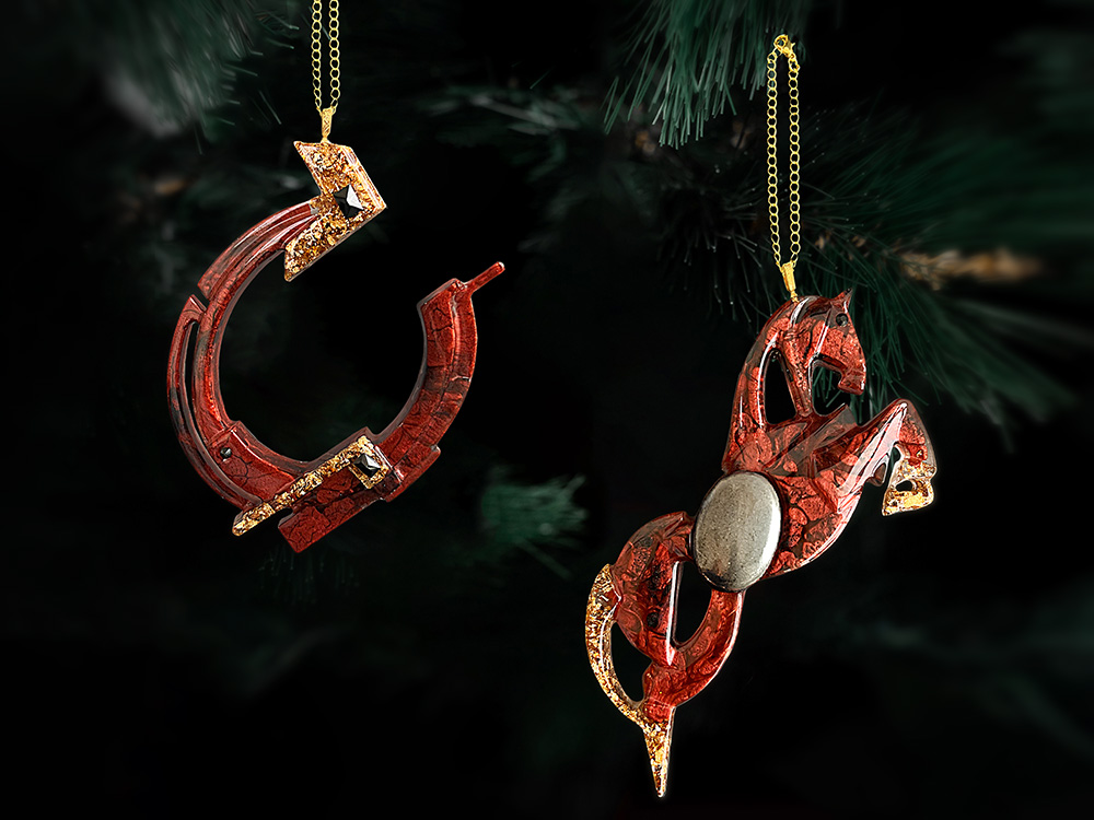 Изысканный дуэт талисманов, наполненных символизмом и энергией в духе Василия Кандинского. В набор входят две уникальные фигурки: лошадь и подкова, созданные в оттенке «Гранатовый шёлк» — насыщенном, благородном бордо с лёгким шелковистым отблеском, напоминающем вечернее праздничное платье.