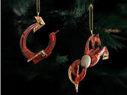 Игрушки бережно упакованы в стильную коробку из плотного премиального картона с индивидуальным ложементом, который надёжно фиксирует игрушку. Такой презент не требует дополнительной упаковки и готов порадовать своего обладателя. Для вашего удобства к каждой игрушке прилагается элегантная цепочка или ленточка, с помощью которой вы легко сможете подвесить их на ёлку.