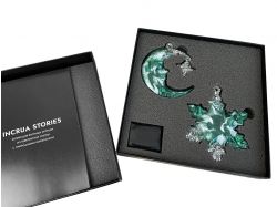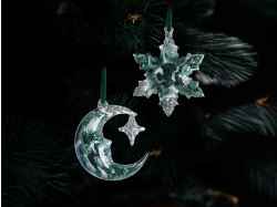 Набор из 2-х елочных игрушек: в форме месяца и снежинки. Игрушки выполнены из ювелирной эпоксидной смолы и украшены галтовкой из натуральных минералов.