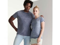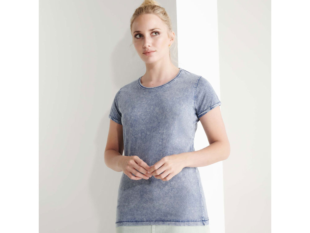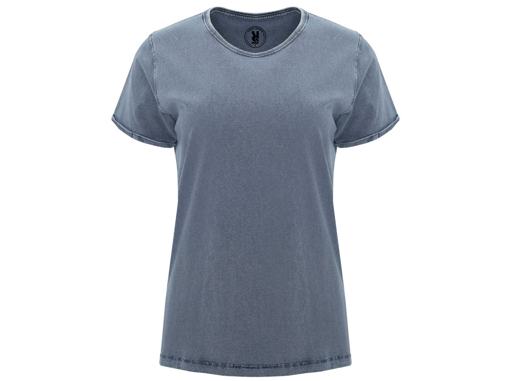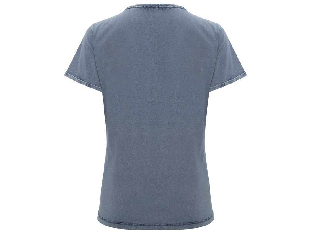 Женская футболка с джинсовым эффектом. Короткий рукав, горловина обработана рибом 1х1 и дополнительно укреплена тесьмой. Двойная отстрочка по пройме. Рукав с закручивающимся краем. В ассортименте также представлена аналогичная мужская модель "Husky"