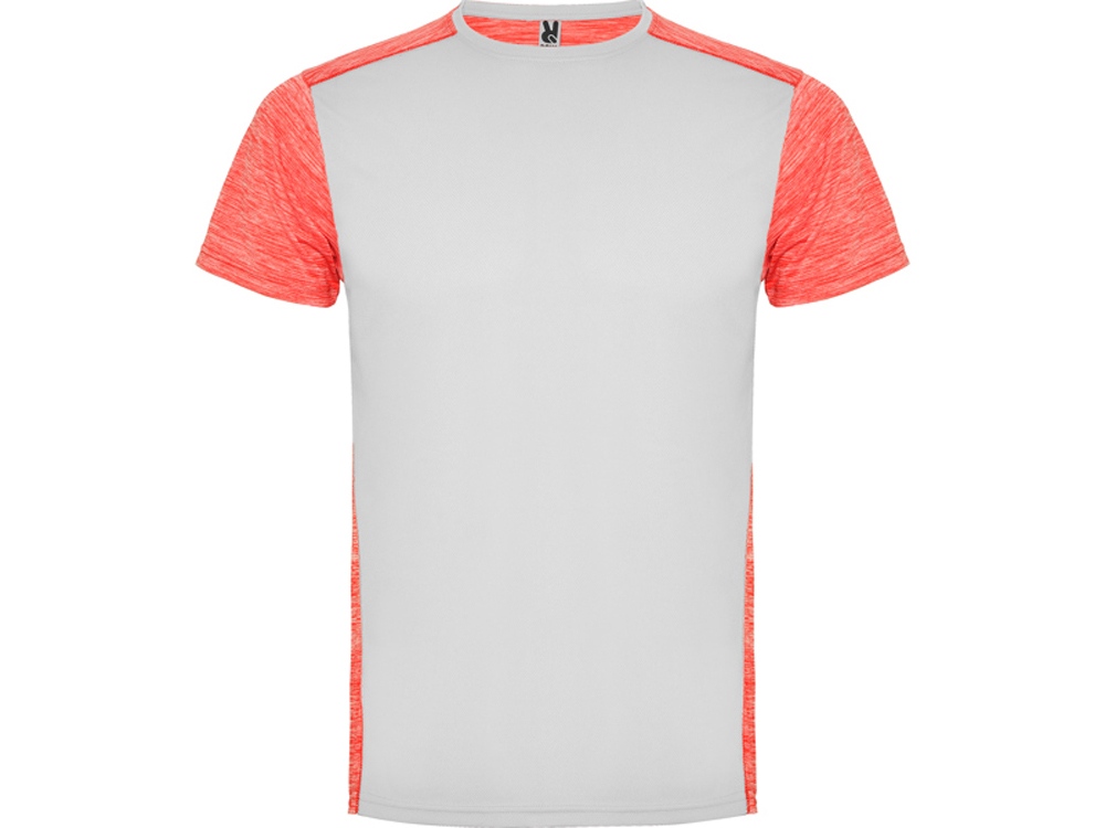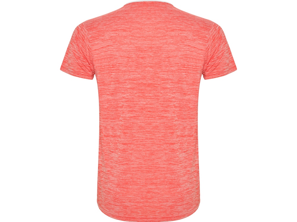 Футболка с коротким рукавом из технологического полотна. Круглый вырез горловины. Комбинация двух полиэстеровых полотен. Основное полотно на полочке со структурой, дополнительное полотно на спинке, рукавах и плечах с меланжевым эффектом. Задняя часть немного длиннее. Легко сохнущее дышащее полотно.