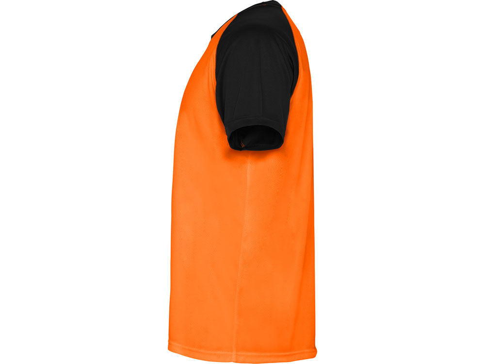 Спортивная футболка с контрастным рукавом реглан. Круглый вырез горловины с контрастной тесьмой. Технологическое дышащее полотно.