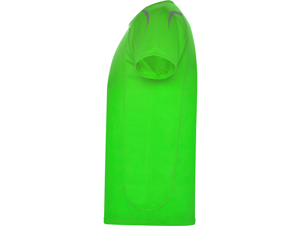 Футболка с коротким рукавом реглан из технологического джерси. Контрастные отстрочки по манжетам, талии, горловине и боковым швам. Дышащее технологичное полотно - легко стирается и быстро сохнет. Светоотражающие детали, за исключением черного и королевского синего цветов, в которых эти детали желтые.