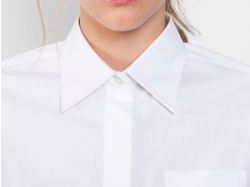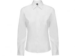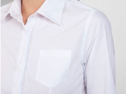Рубашка женская прилегающего силуэта с длинным рукавом, вытачки на полочке и спинке. Накладной карман на груди слева, закругленный низ изделия. Планка с потайными пуговицами.