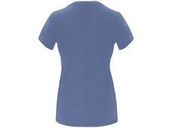 Женская приталенная футболка. Круглый вырез горловины обработан рибом 1х1. Шов горловины укреплен тесьмой.