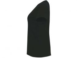 Женская приталенная футболка. Круглый вырез горловины обработан рибом 1х1. Шов горловины укреплен тесьмой.