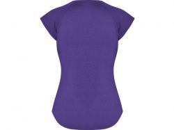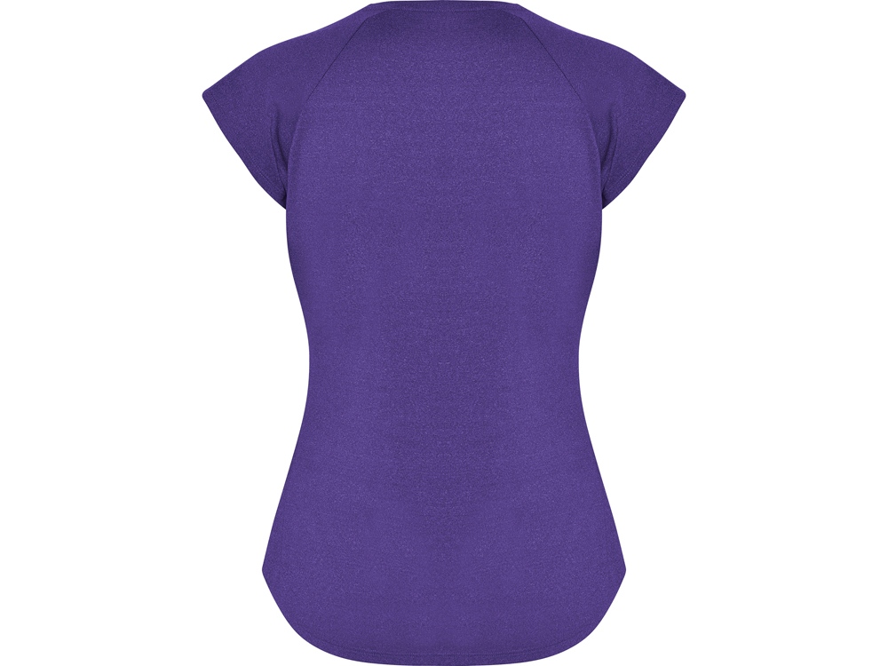 Спортивная женская футболка с коротким рукавом реглан. Вырез горловины V. Полотно из полиэстера на ощупь напоминающее хлопок. Приталенный силуэт.