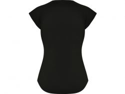 Спортивная женская футболка с коротким рукавом реглан. Вырез горловины V. Полотно из полиэстера на ощупь напоминающее хлопок. Приталенный силуэт.