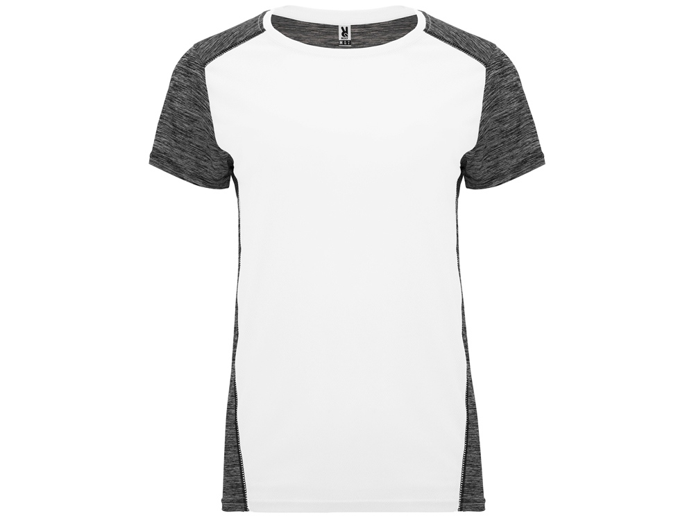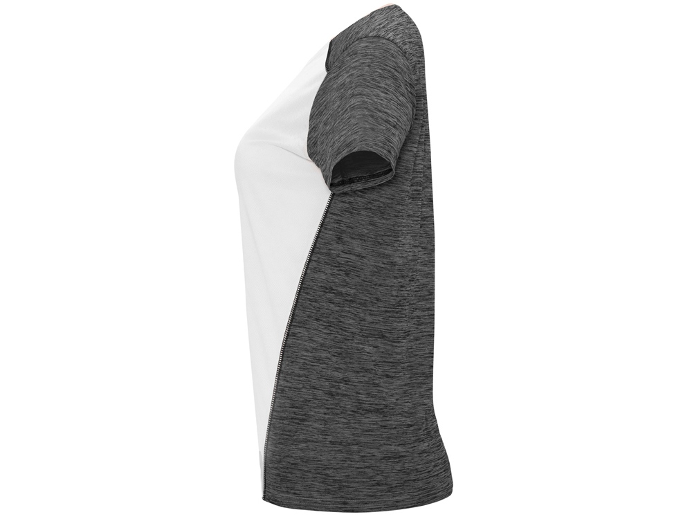 Футболка с коротким рукавом из технологического полотна. Круглый вырез горловины. Комбинация двух полиэстеровых полотен. Основное полотно на полочке со структурой, дополнительное полотно на спинке, рукавах и плечах с меланжевым эффектом. Задняя часть немного длиннее. Легко сохнущее дышащее полотно.