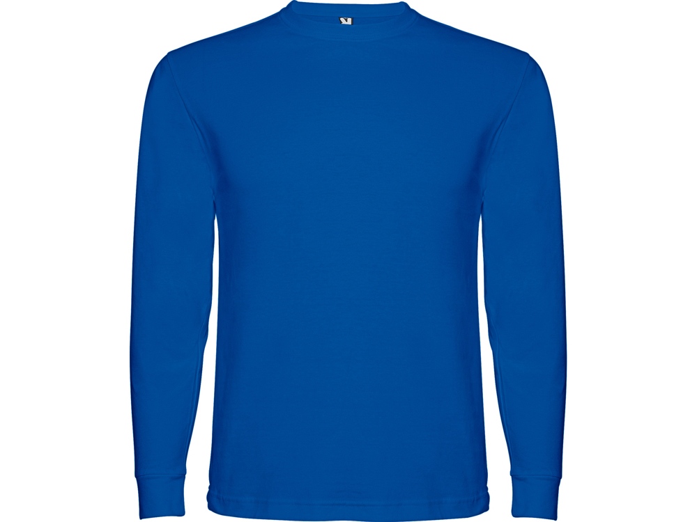 Футболка с длинным рукавом без боковых швов. Круглый вырез горловины и манжеты из риба 1х1. Укрепляющая отделочная строчка по горловине и плечам