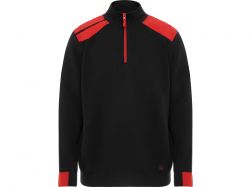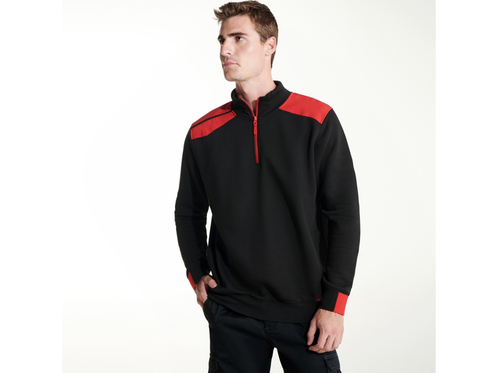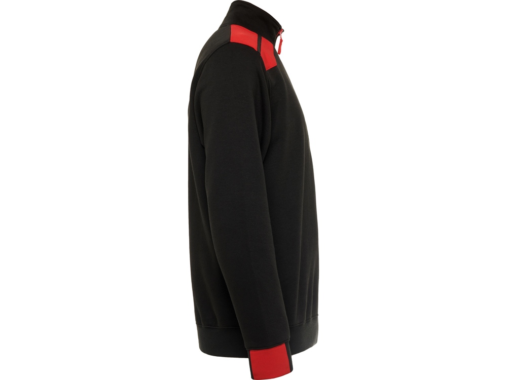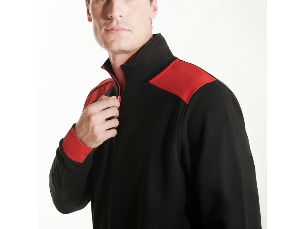Толстовка с воротом- стойкой на молнии с сочетанием двух цветом. Половина манжет и низ изделия из рибового полотна 1х1. Укрепляющая отстрочка по внутреннему воротнику. Контрастные плечи , детали, молния и манжеты