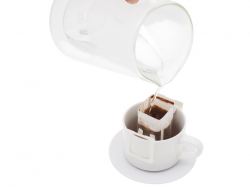 Как заварить: откройте дрип-пакет, расправьте ручки и зафиксируйте на чашке, залейте 150–200 мл воды температурой 90–95 °C в несколько проливов.
