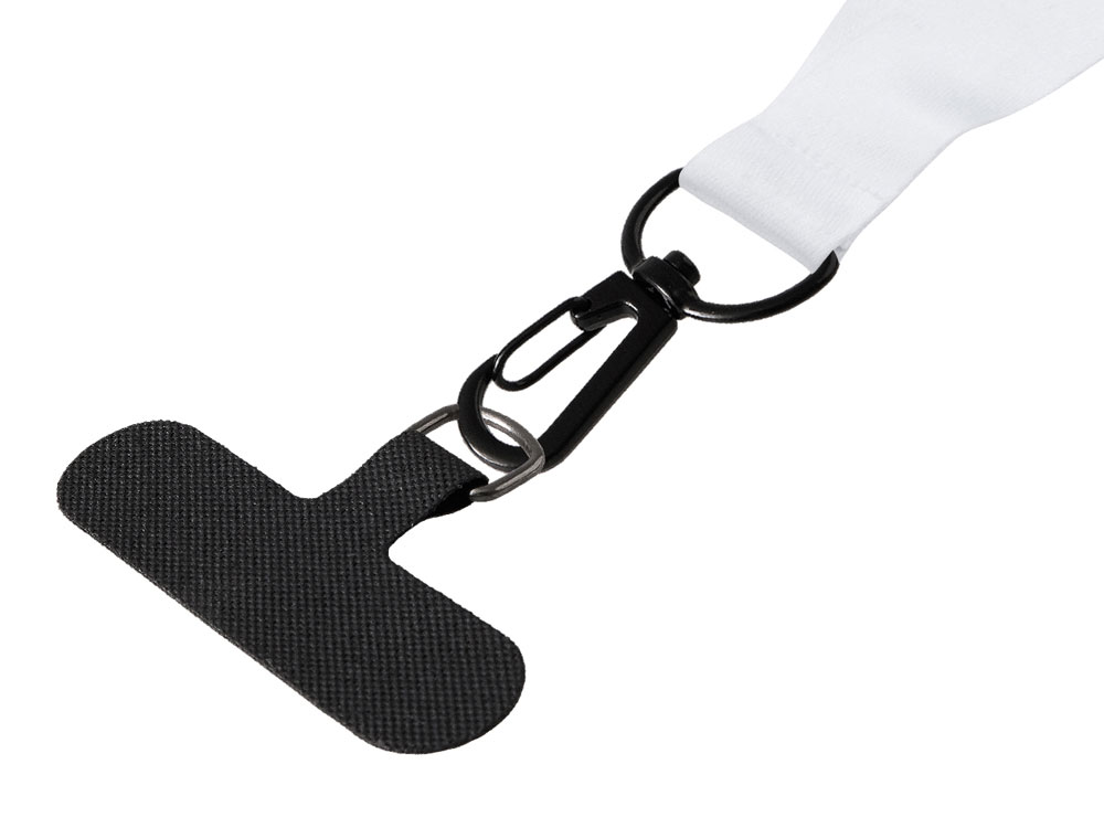 Ланъярд 2 см под сублимацию с трендовым карабином, замком обрыва и узким держателем для телефона из ПЭ, черный