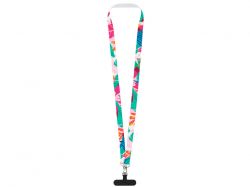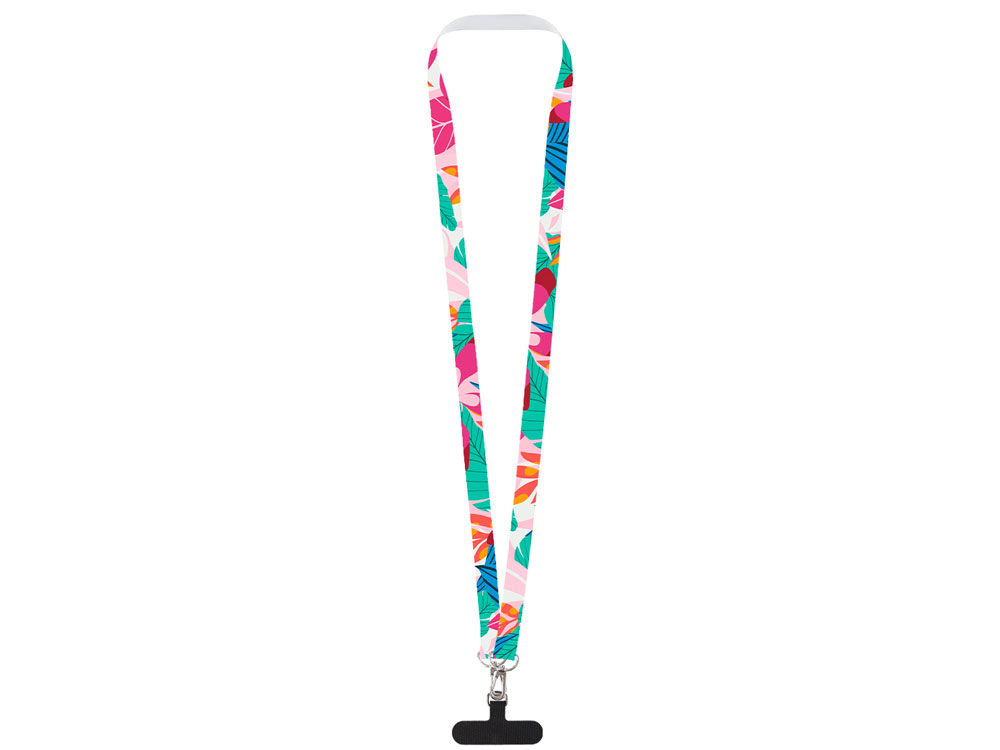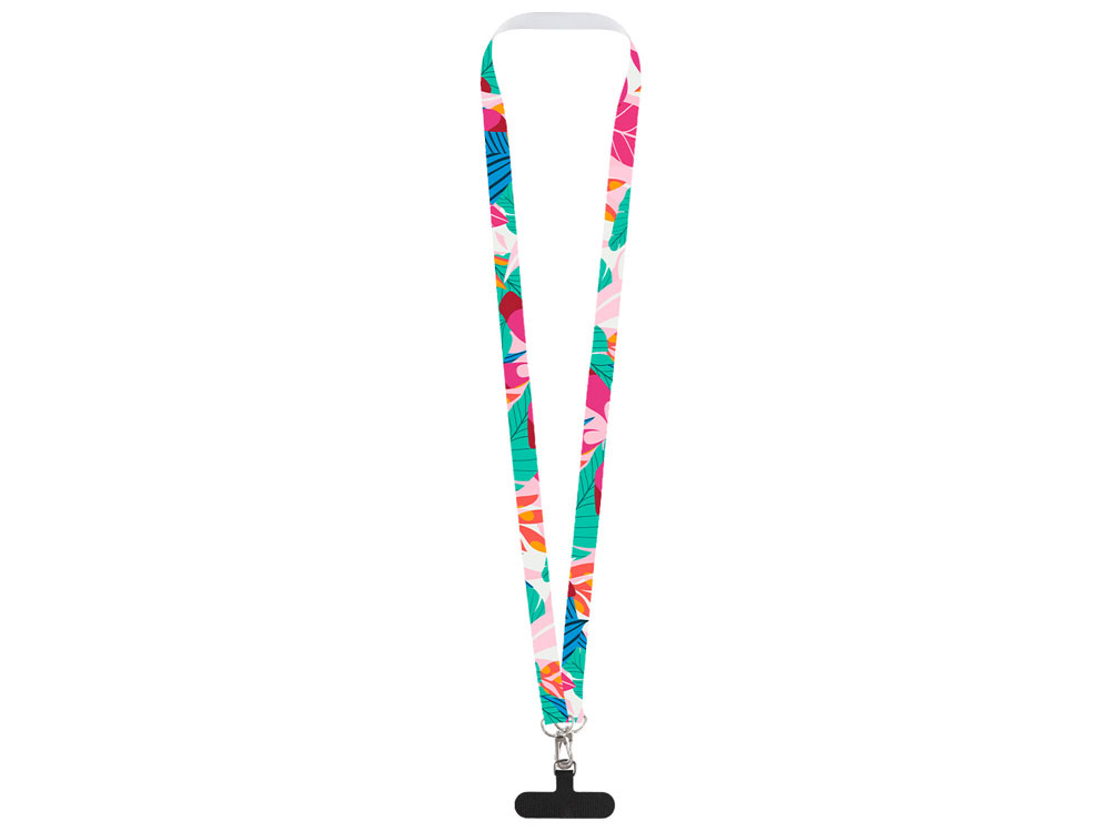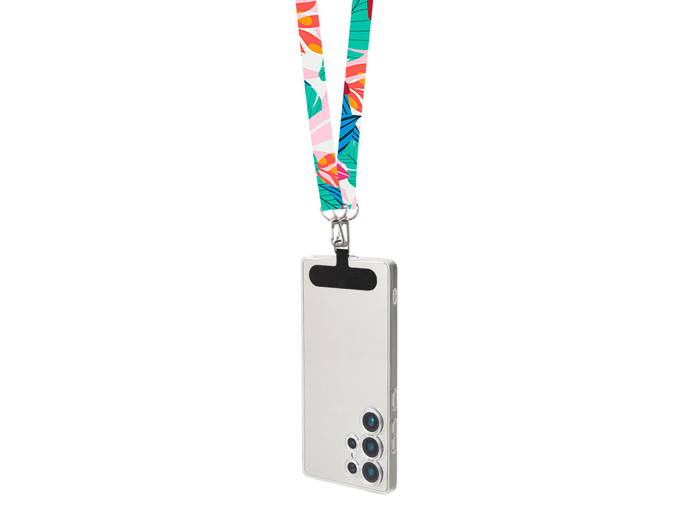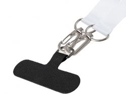 Ланъярд 2 см под сублимацию с 2-мя трендовыми карабинами и узким держателем для телефона из ПЭ, серебристый